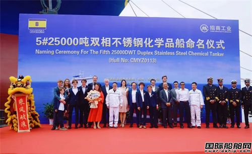 7月19日,招商工業揚州金陵為比利時船東CMB建造的第5艘25000噸雙相不銹鋼化學品船舉行命名儀式。船東CCO Michael Saverys帶領家族成員出席了本次命名儀式。船東及船級社現場監造組,高級船員也受邀參加本次儀式,共同見證了新船命名。