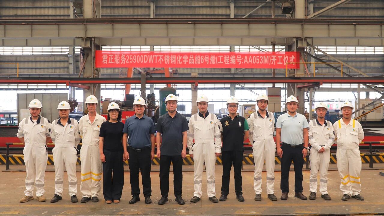 8月29日,君正船務與武昌船舶重工集團有限公司(下稱“武昌造船”)合作的25900載重噸不銹鋼化學品船6號船在武昌造船順利開工。